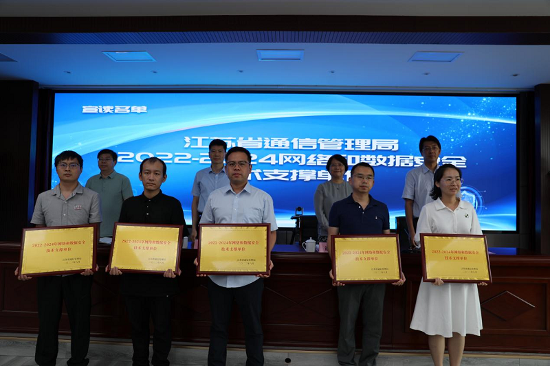 会议总结分析了发现的问题,通报了存在未授权访问漏洞可导致超1500万条用户信息可读取、存在弱口令漏洞可导致17181条工作人员信息泄露等多起典型案例,表彰了成绩优秀的支撑单位、组织单位和个人,为江苏省通信管理局2022-2024年度的20家网络和数据安全工作支撑单位进行了授牌。