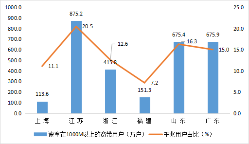 图4 2022年7月 可比省(市)千兆用户及占比