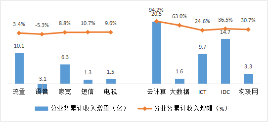 细分来看,To B业务中的数据中心、云计算、大数据、ICT、物联网收入分别为55.1亿元、42.2亿元、4.2亿元、49.3亿元和13.9亿元,同比增速分别为36.5%、94.2%、63.0%、24.6%和30.7%。