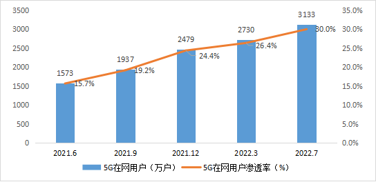 图3 2022年7月 5G在网用户发展情况