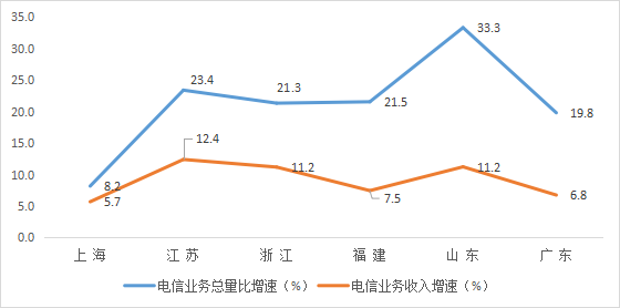 江苏1-7月电信业务收入、总量同比分别增长 12.4%和23.4%
