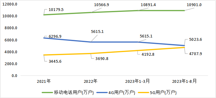 5G在网用户快速发展。至8月底,我省移动电话用户总数达1.1亿户,全国排名第4位;其中,5G在网用户达4707.9万户,全国排名第4位,占移动电话用户的43.2%。