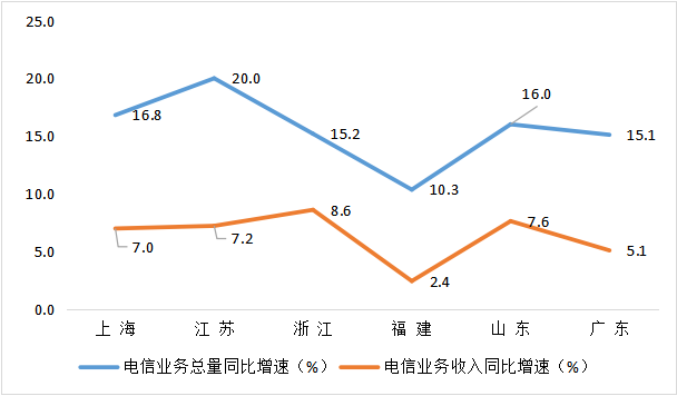 江苏1-8月电信业务收入、总量同比分别增长7.2%和20.0%