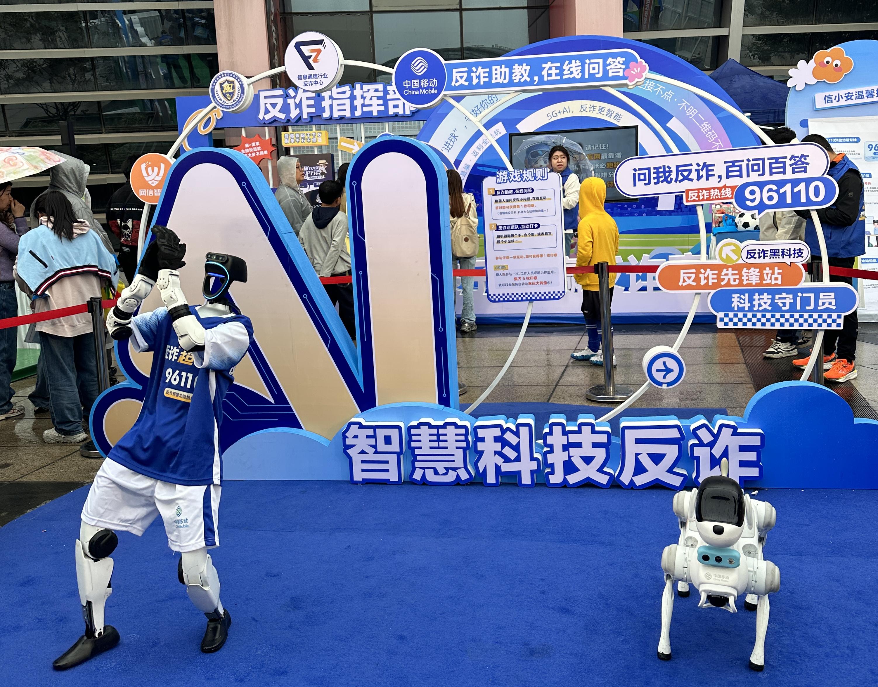 活动现场,智能机器狗、AI互动机器人等“黑科技”设备轮番登场,凭借灵动的表现吸引大批球迷驻足参与。机器人反诈问答、足球大作战、反诈盲盒竞猜等互动环节,不仅贴合赛事主题,更让群众在轻松愉悦的体验中掌握反诈知识。与此同时,现场循环播放的反诈宣传视频、发放的宣传手册以及陈列的宣传展架,深入解读高发诈骗案例,细致讲解防范技巧,让反诈知识入脑入心。