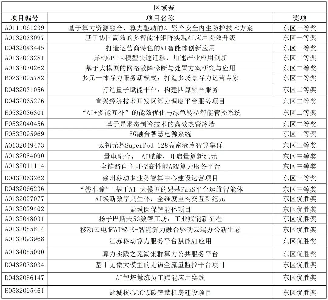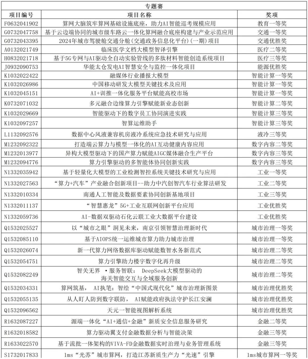 在区域赛与专题赛阶段,江苏省共有58个项目脱颖而出,荣获一等奖12项、二等奖16项、三等奖14项、优胜奖16项,涵盖AI安全、智能计算、工业互联网、城市治理、医疗健康、能源交通等多个前沿领域,展现出江苏在算力基础设施建设、行业融合应用等方面的深厚积累。