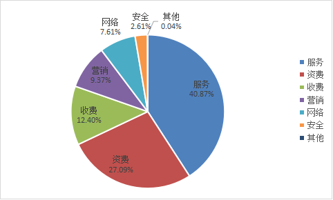 2025年第三季度,江苏省电信用户申告率为513.97人次/百万用户,其中涉及服务争议的用户申告率为210.04人次/百万用户,占比40.87%;涉及资费与收费争议的用户申告率为202.98人次/百万用户,占比39.49%;涉及营销宣传、网络质量、信息安全的用户申告率为100.72人次/百万用户,占比19.60%;其他类的用户申告率为0.22人次/百万用户,占比0.04%。