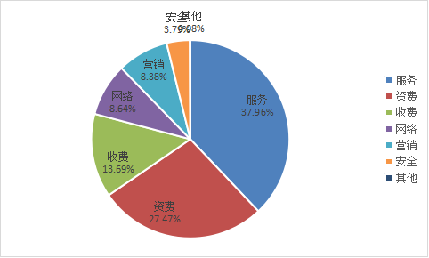2025年第四季度,江苏省电信用户申告率为342.66人次/百万用户,其中涉及服务争议的用户申告率为129.96人次/百万用户,占比37.96%;涉及资费与收费争议的用户申告率为140.93人次/百万用户,占比41.16%;涉及营销宣传、网络质量、信息安全的用户申告率为71.24人次/百万用户,占比20.80%;其他类的用户申告率为0.26人次/百万用户,占比0.08%。