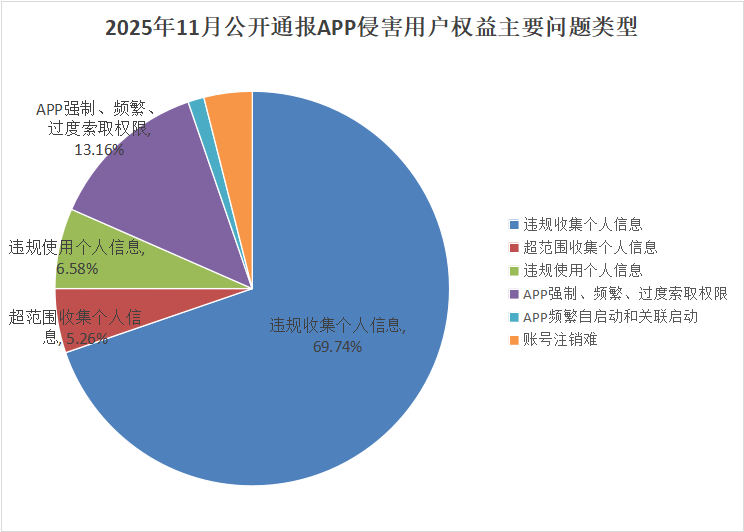 2.开展APP违法违规收集使用个人信息等侵害用户权益专项整治工作,全月共检测APP 63款,公开通报APP 15款,主要问题类型如下图所示: