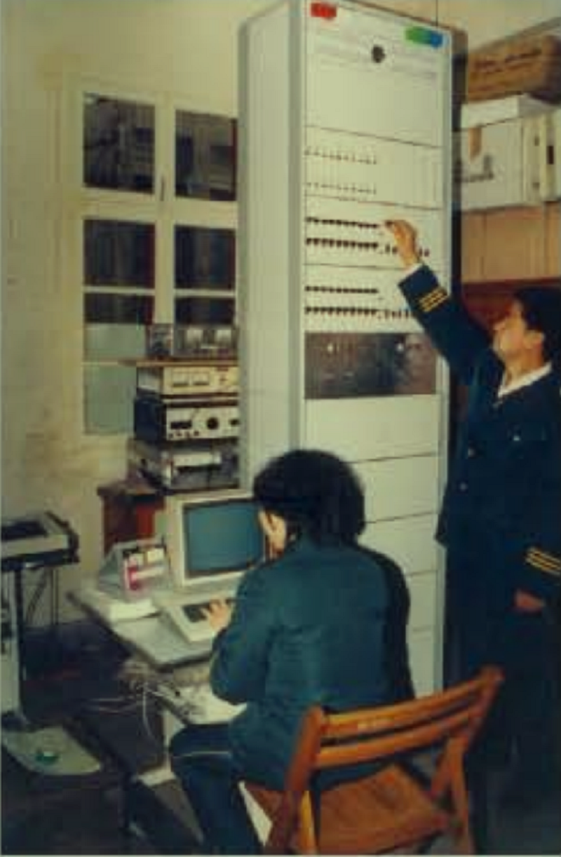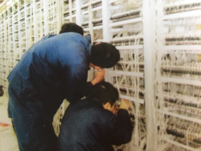 20世纪80年代,铁通员工调整步进制电话交换继电器