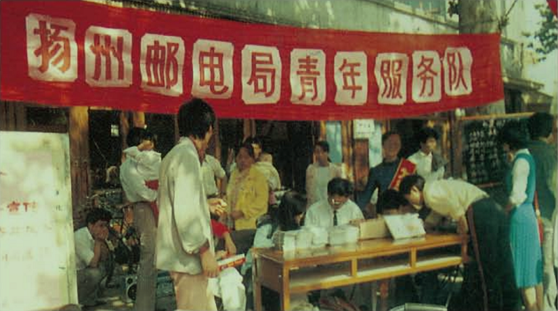 1990年,扬州邮电局组织青年服务队上街为用户服务